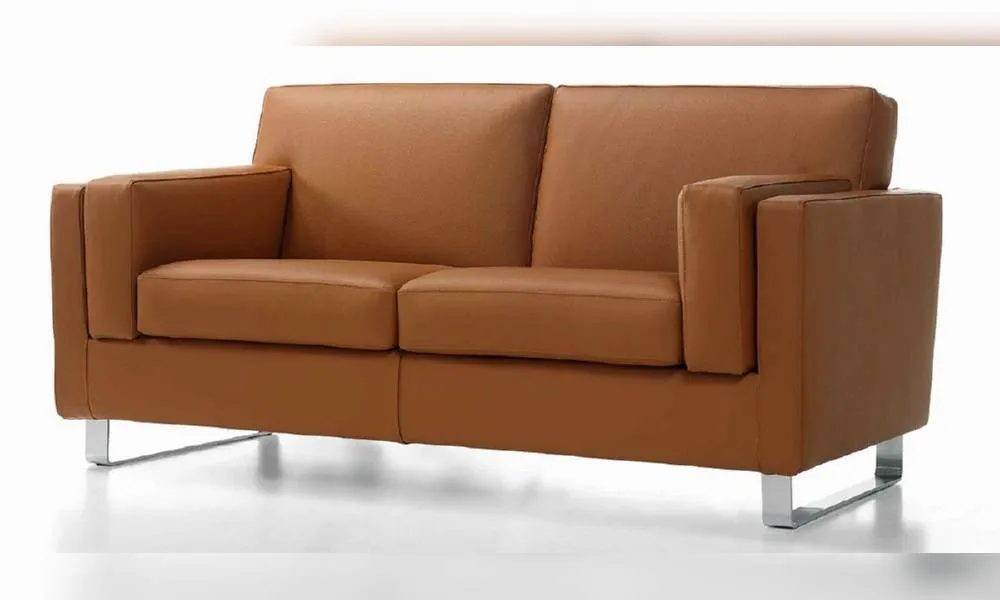 Двухместный диван с металлическими ножками. Возможны другие варианты обивки.