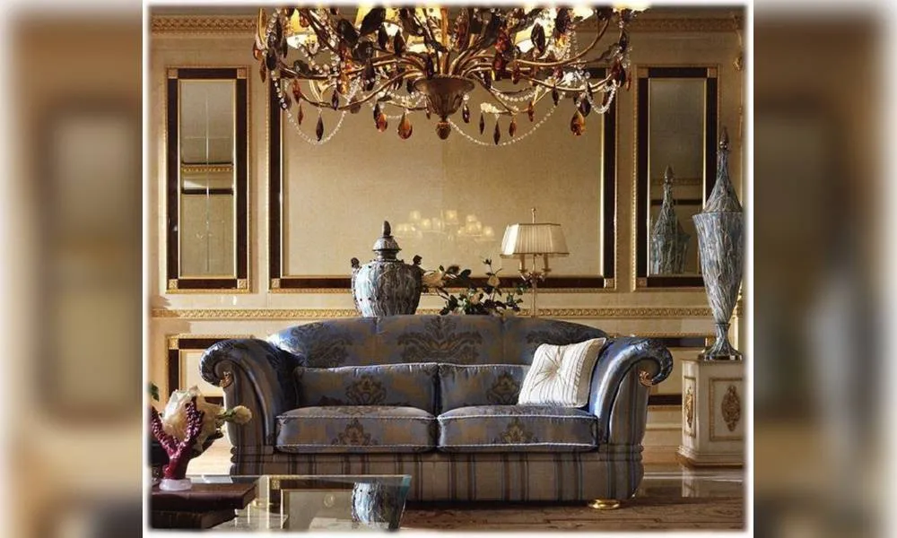 3-х местный диван. Наполнение - полиуретан. Декор ручной работы. Возможны другие цветовые варианты отделки и обивки.