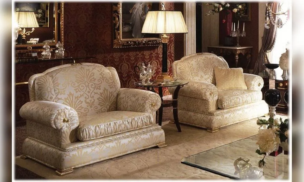 Кресло. Латунные ножки. Наполнение - полиуретан. Декор ручной работы. Возможны другие цветовые варианты обивки.