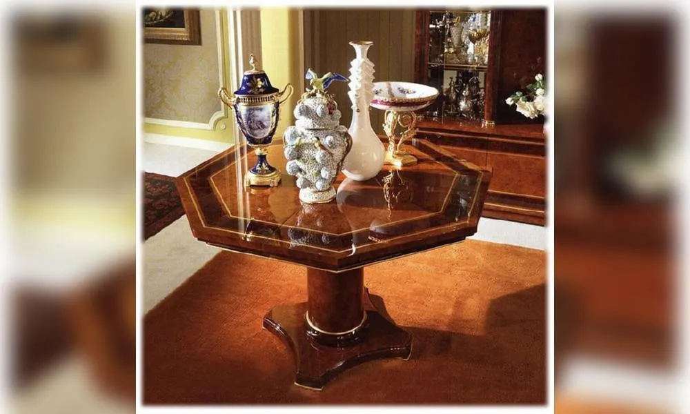 Раздвижной восьмиугольный стол. Декор ручной работы. Возможны другие цветовые варианты отделки.