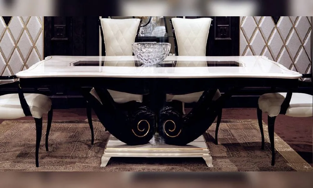 Прямоугольный стол. Декор ручной работы. Стеклянная вставка на столешнице. Возможны другие варианты отделки.
