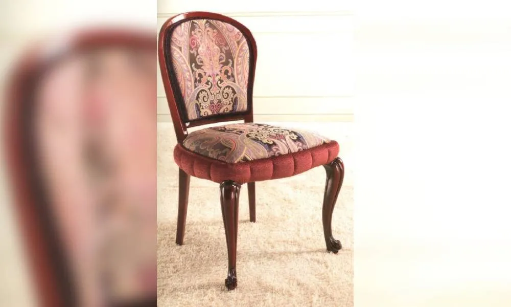 Стул, мягкие сидение и спинка. Декорирован резными элементами. Наполнение - полиуретан. Возможны другие варианты обивки.