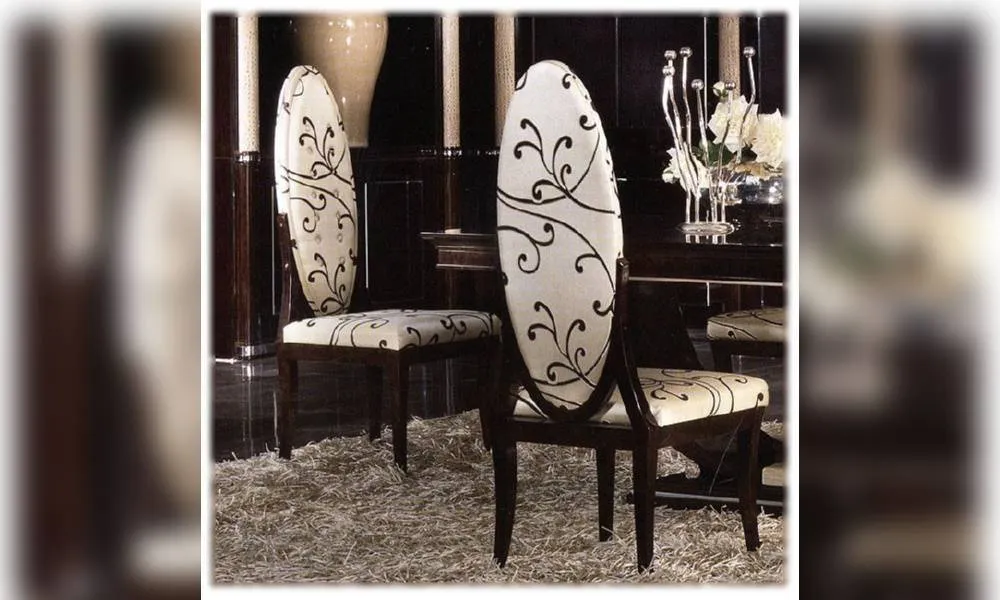 Стул с высокой мягкой спинкой. Декор ручной работы. Возможны другие цветовые варианты отделки и обивки.
