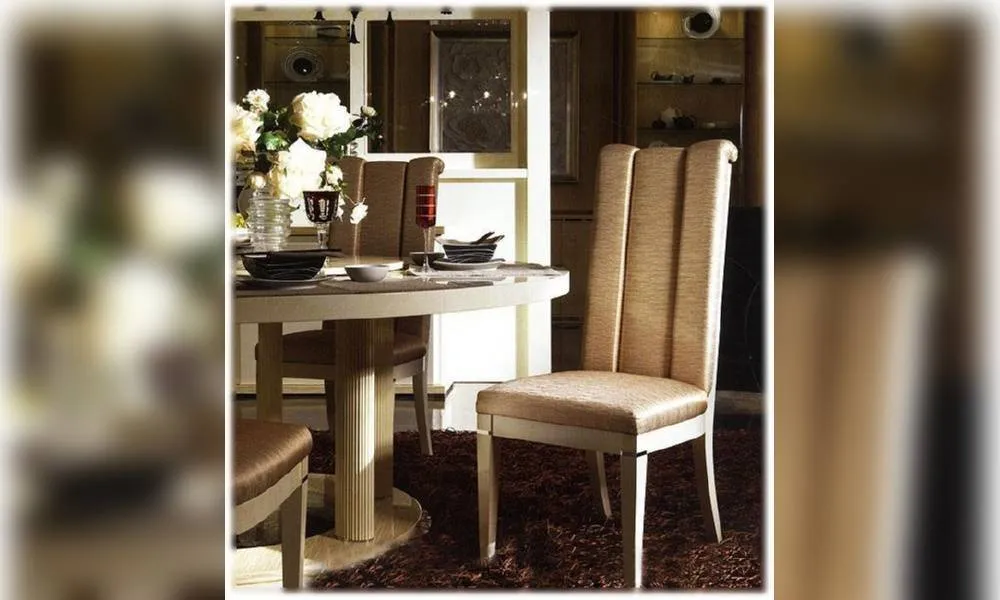 Стул с высокой мягкой спинкой. Декор ручной работы. Возможны другие цветовые варианты отделки и обивки.
