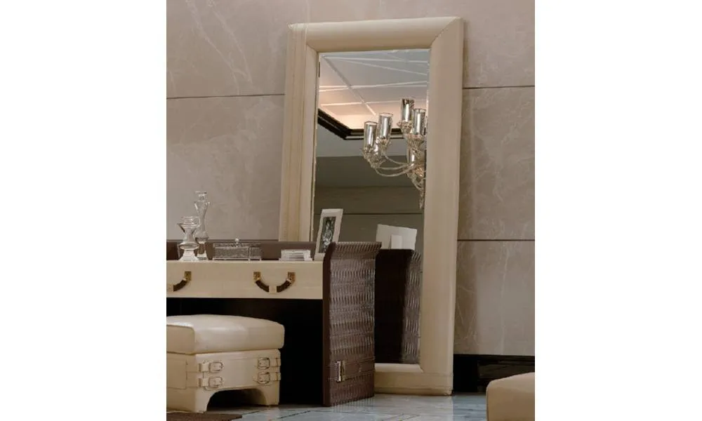 Напольное зеркало с рамой в кожаной обивке. Возможны другие виды ее выполнения.